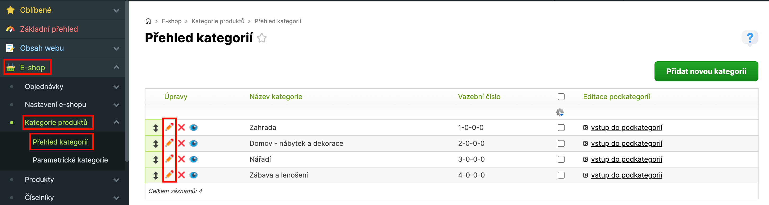 Povolit odesílání parametrů do feedu je snadné. V menu Eshop → Parametry → Exportní feedy. Lze posílat všechny či jen vybrané parametry.
