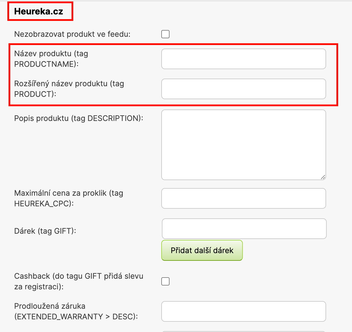 Rozšířený název produktu (tag PRODUCT). Doporučujeme vyplnit obě pole názvů tak, aby obsahovala